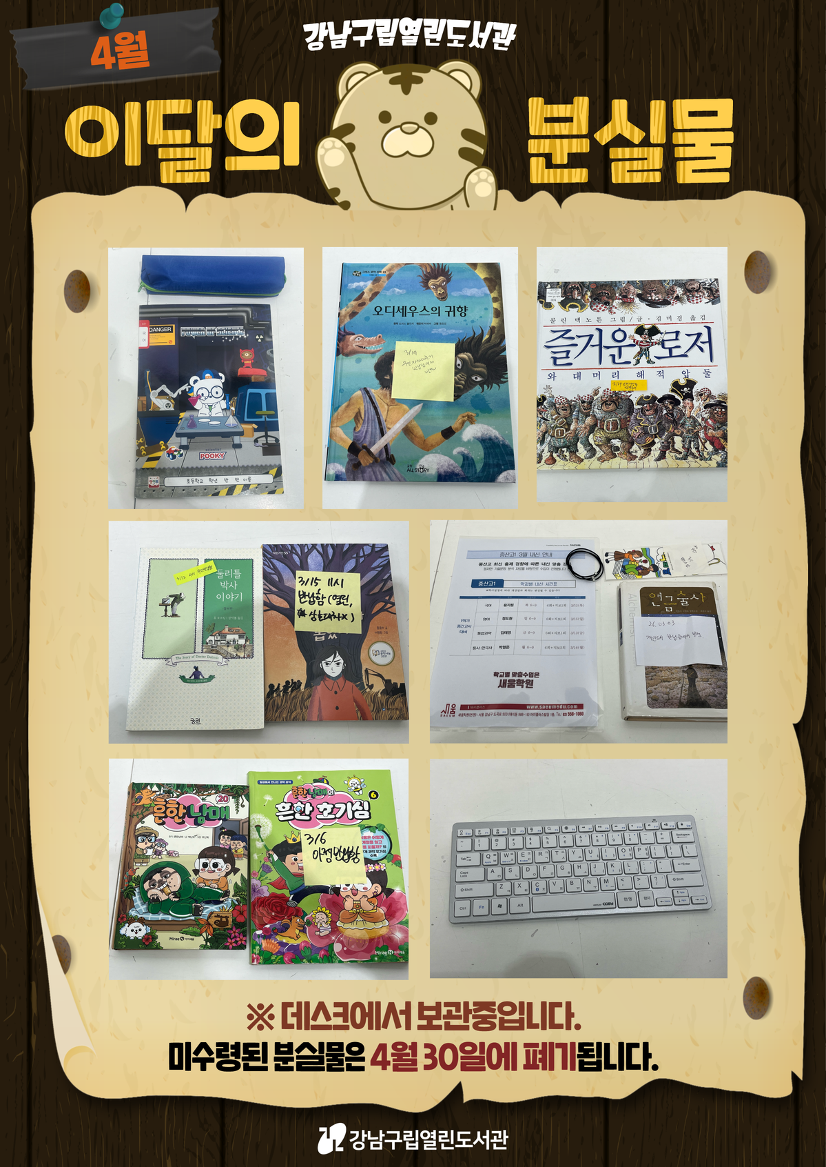 열린도서관에서 지난 달 발생한 분실물을 안내해드립니다.